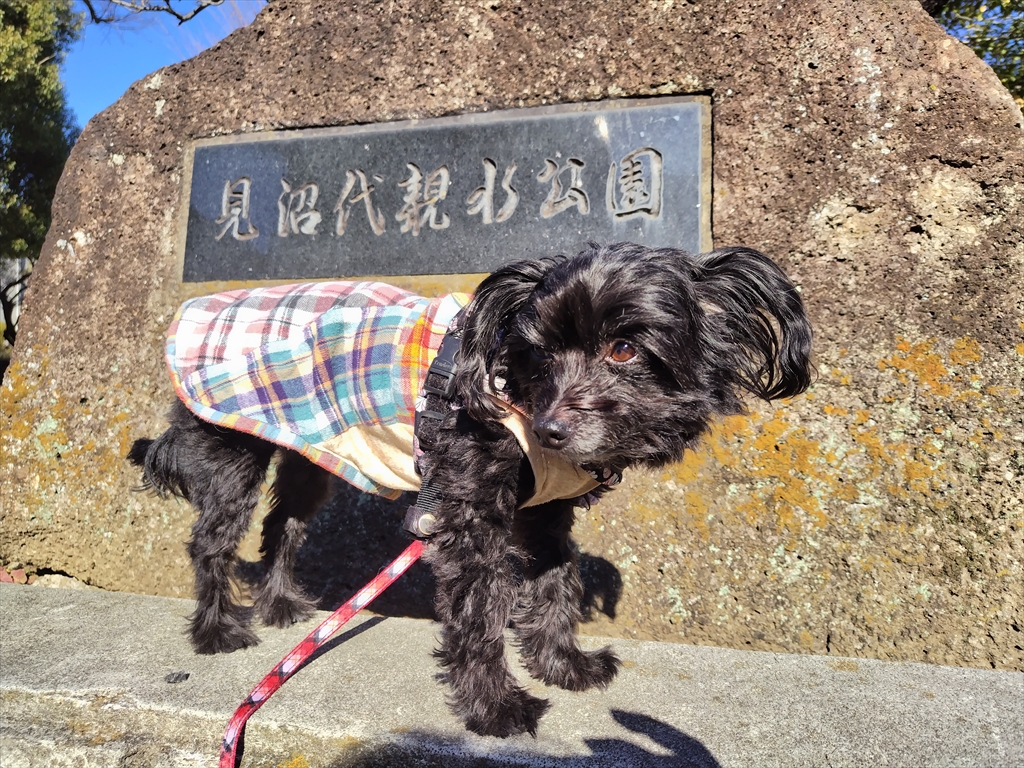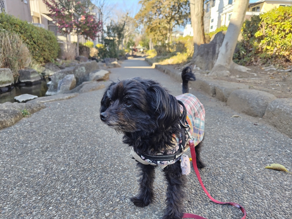 いつもの公園を散歩する犬。