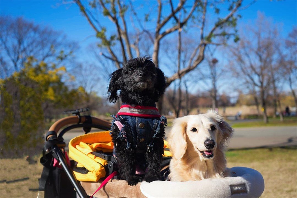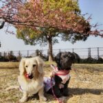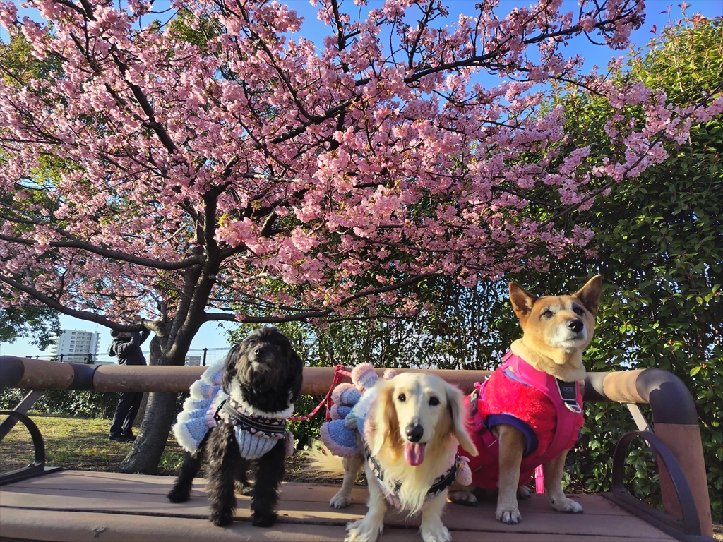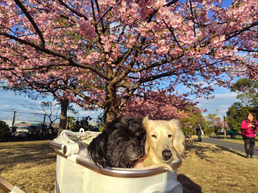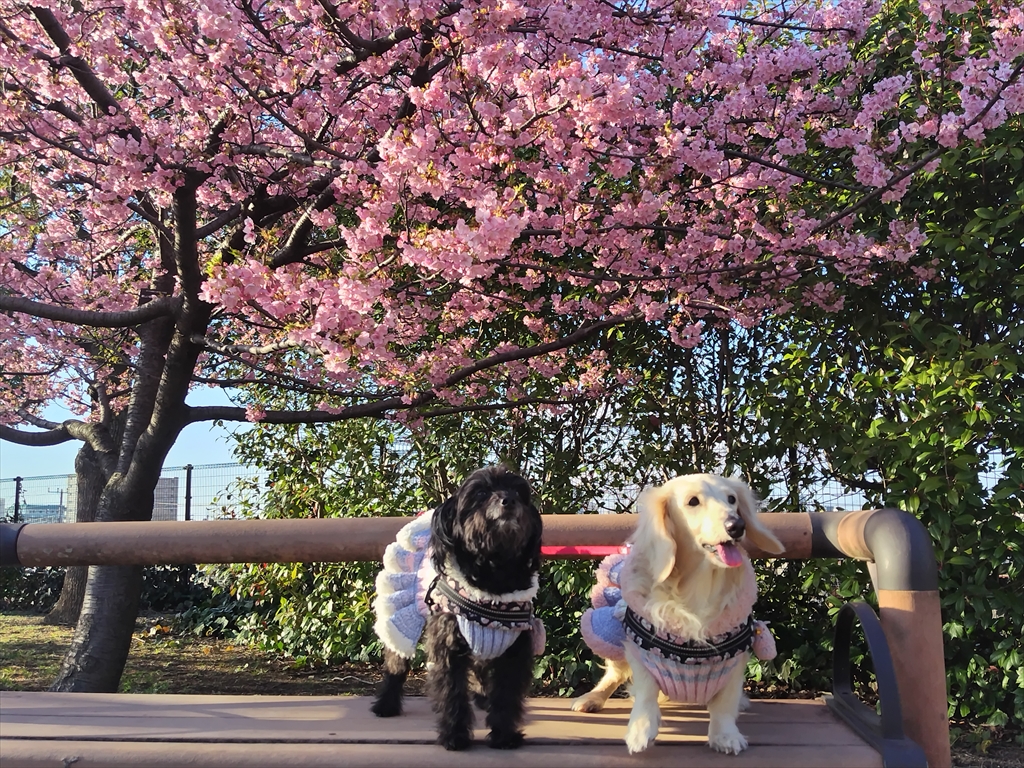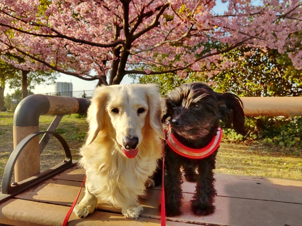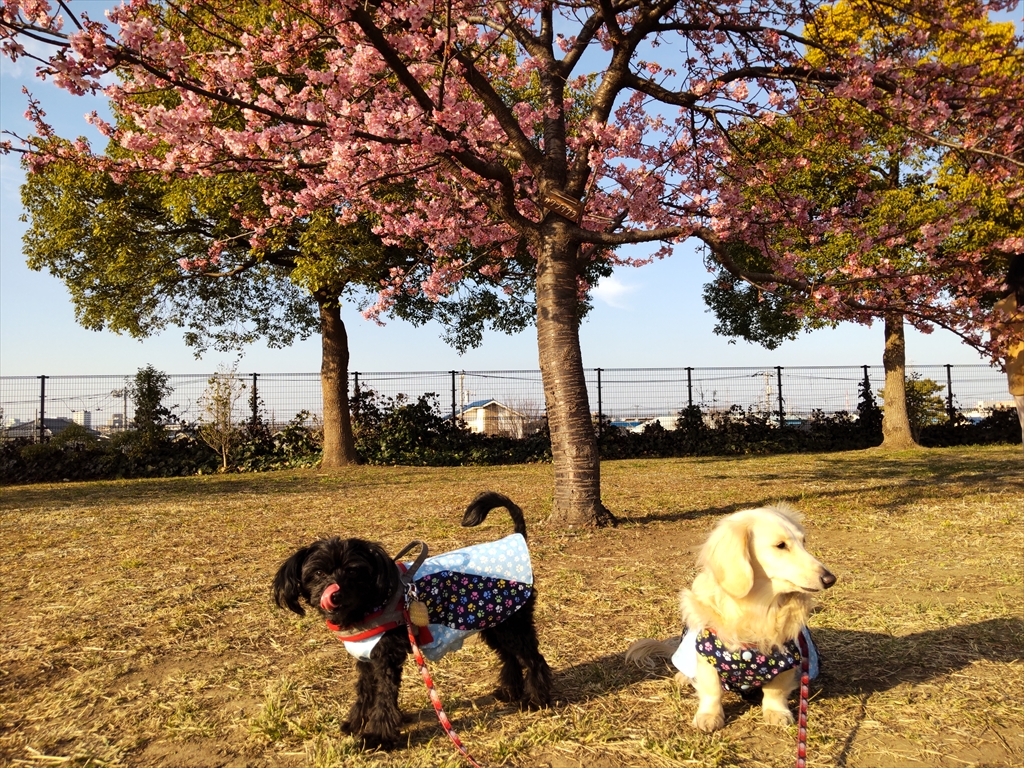 河津桜と寒桜の咲く公園を散歩する犬と、いつものドッグラン。