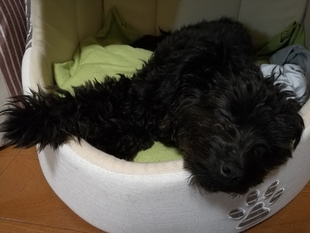 寝てるときは天使な犬。