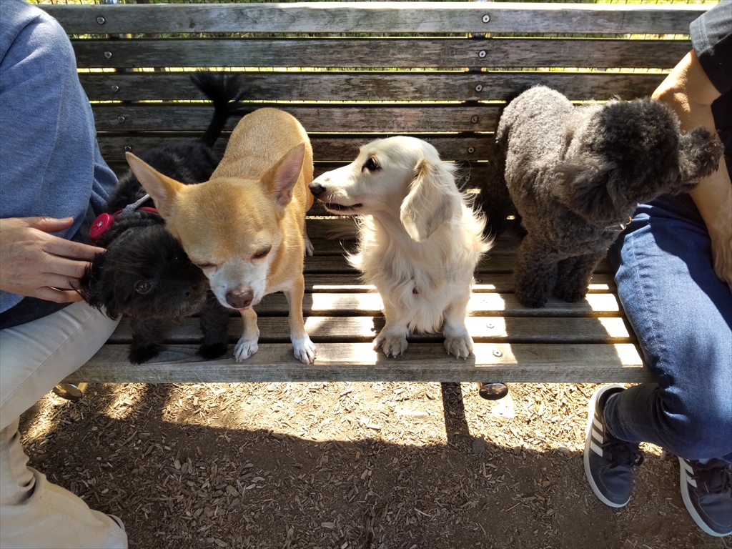 いつものドッグランの、仲良し4人組。