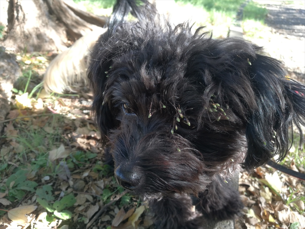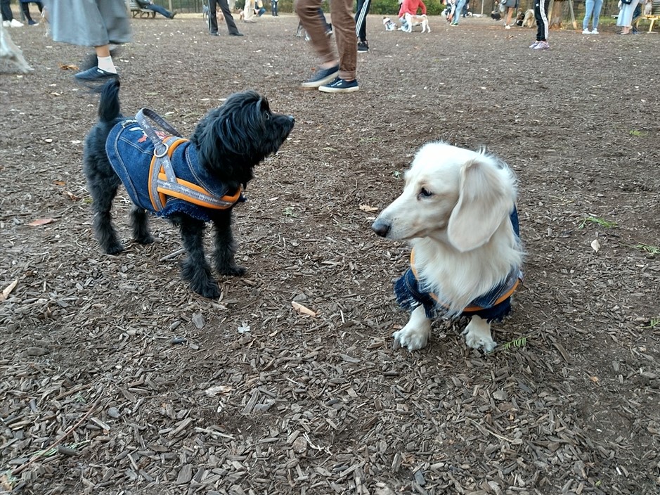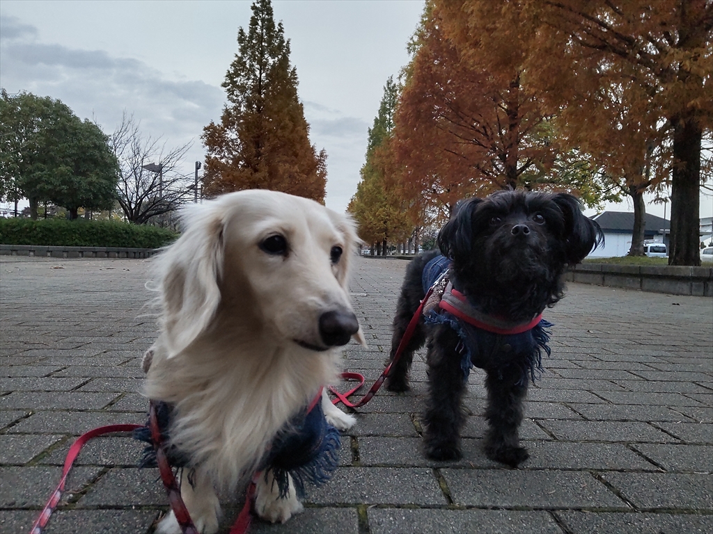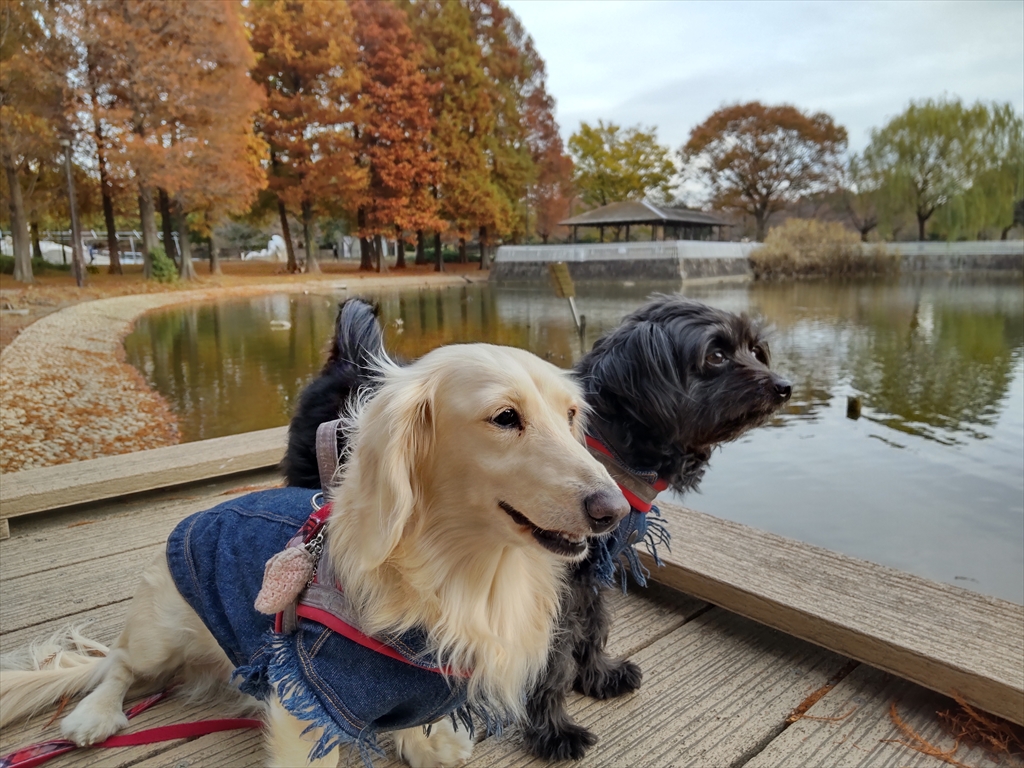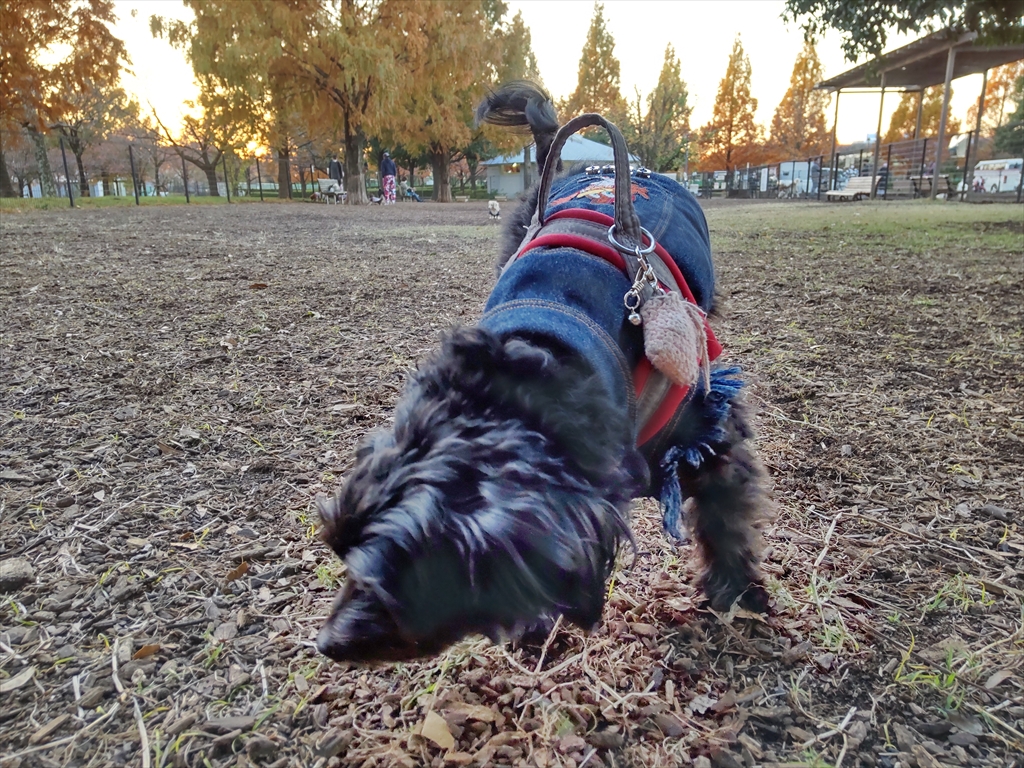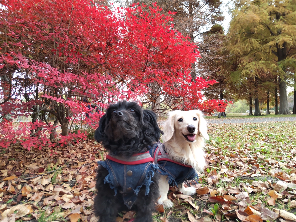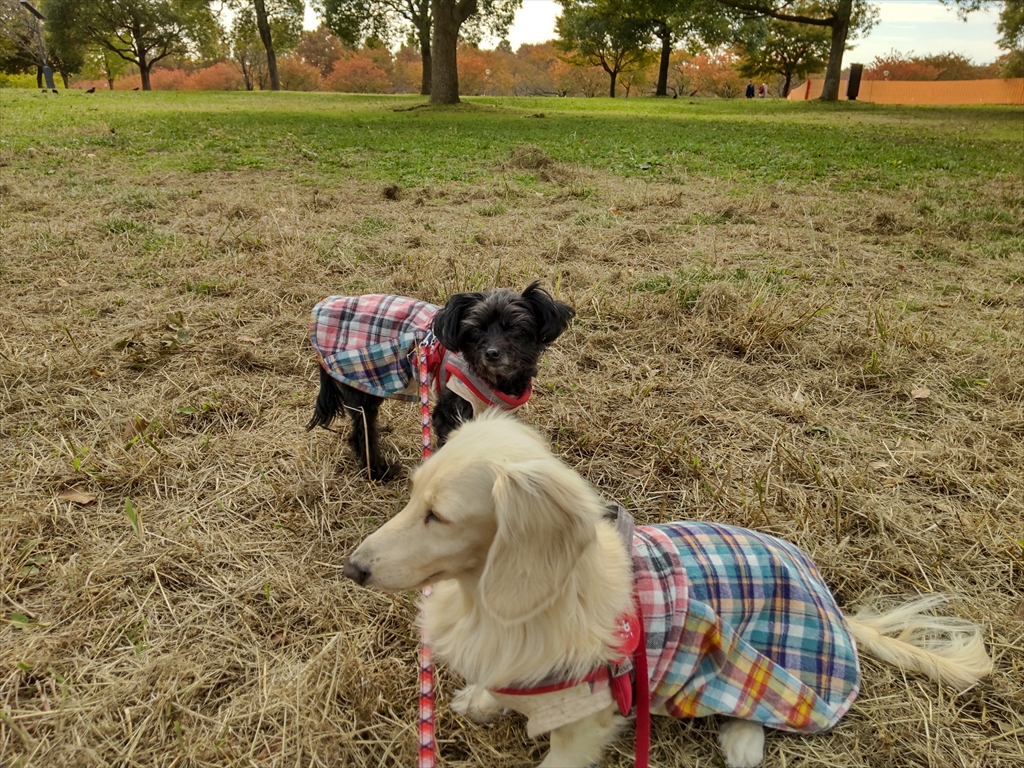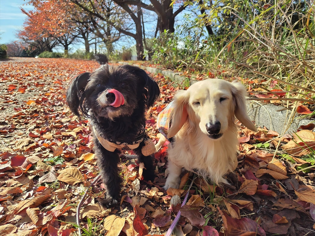 秋の花咲く公園を散歩する犬と、いつものドッグラン。
