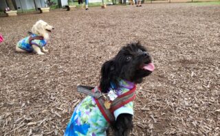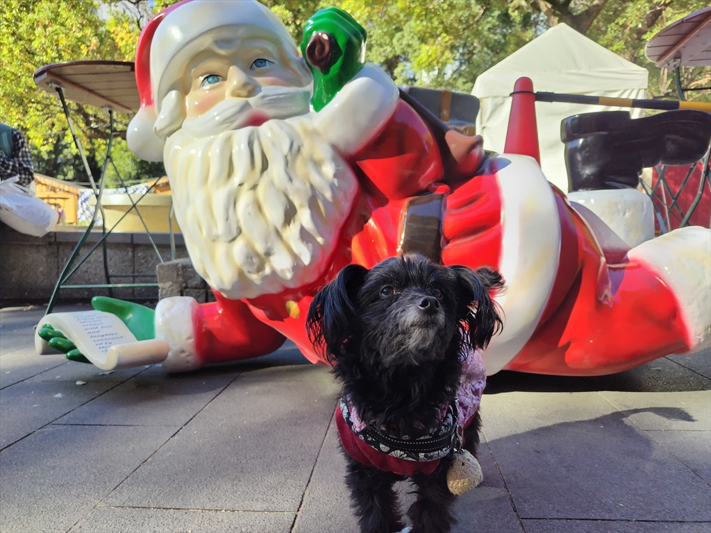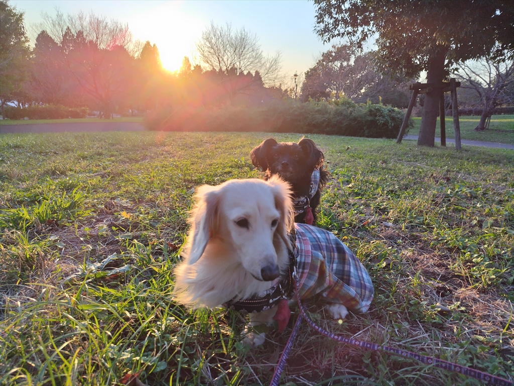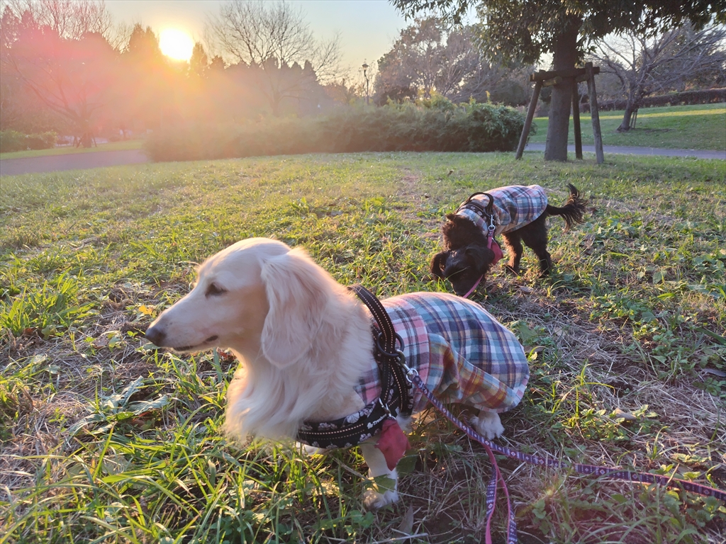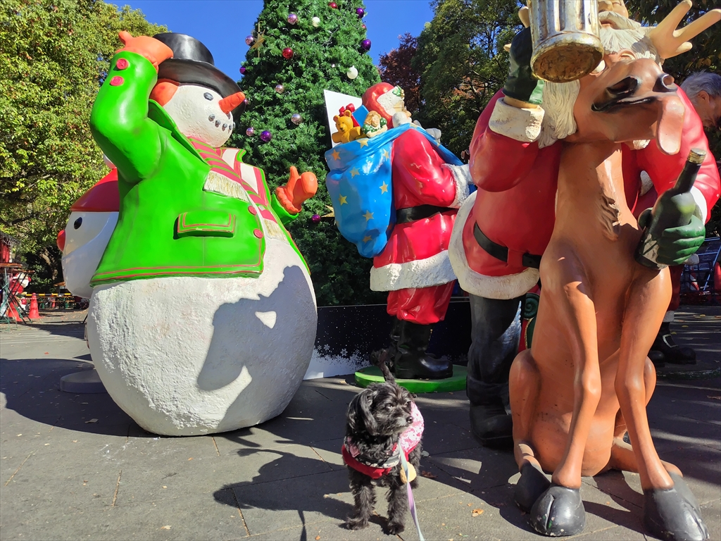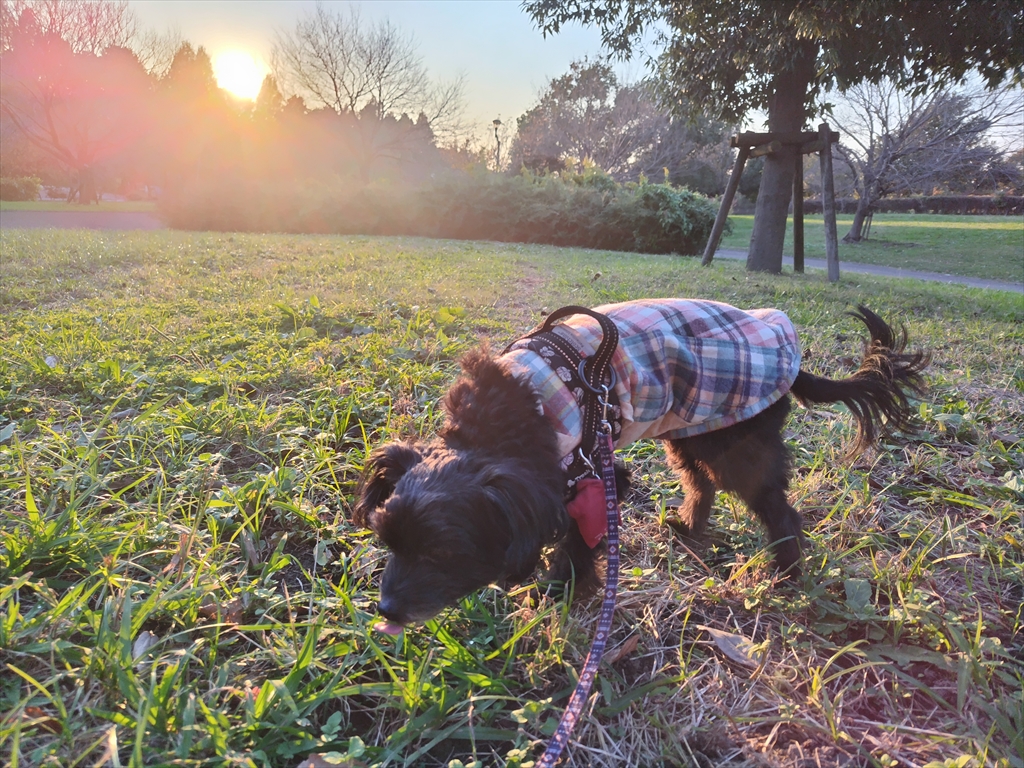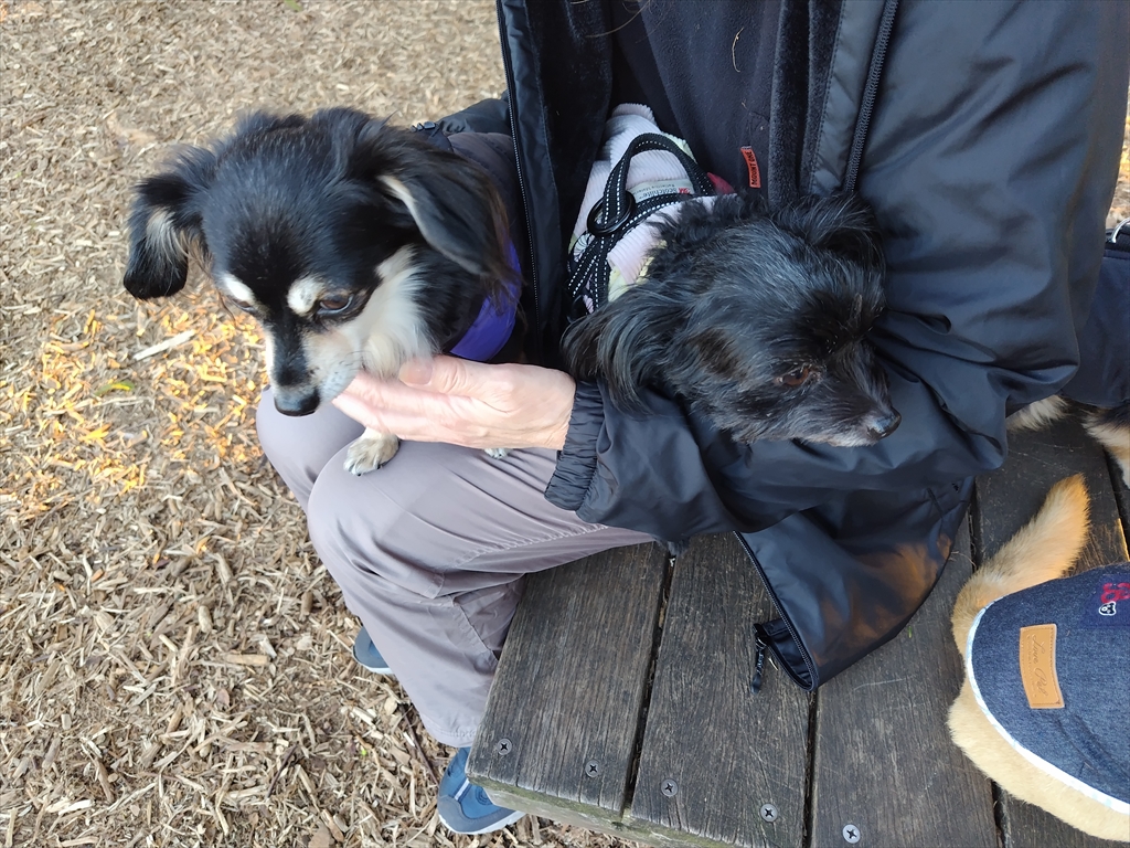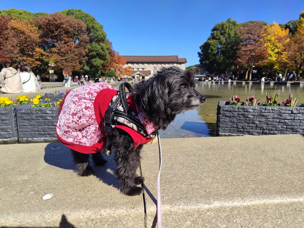 秋の花咲く公園を散歩する犬と、いつものドッグラン。