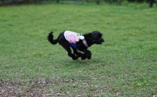 いつものドッグランで、誰と遊ぼうか吟味中の犬。